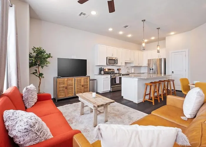 **Accommodations at New! The Courtland, 2 Car Garage Villa are designed to ensure a serene stay.** Each well-appointed room features contemporary decor, plush bedding, and ample natural light, creating a welcoming atmosphere. Guests can unwind in spacious living areas that seamlessly blend comfort with upscale amenities, perfect for both short getaways and extended visits. The villa's two-car garage adds a layer of convenience, catering to those who prefer to explore the bustling cityscape.